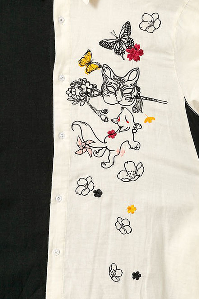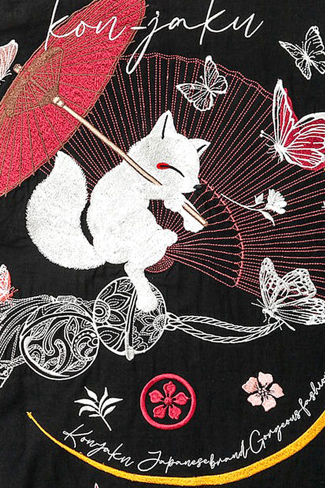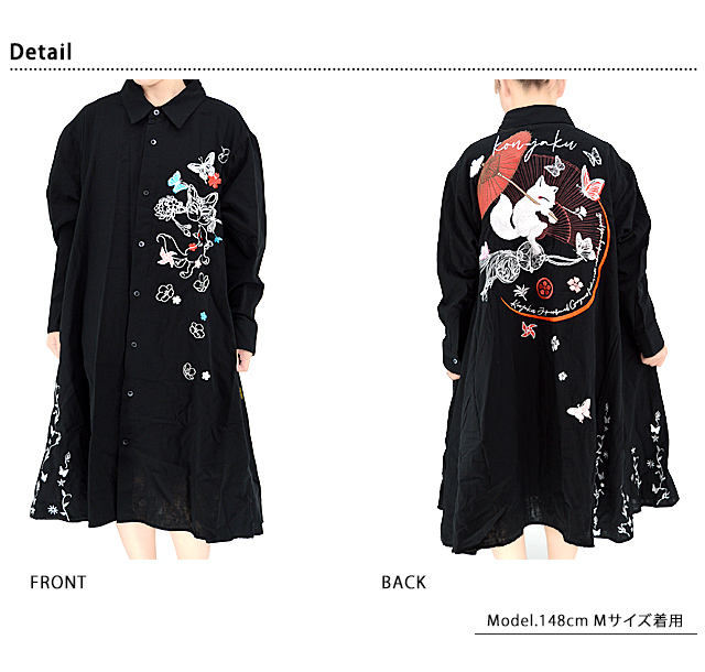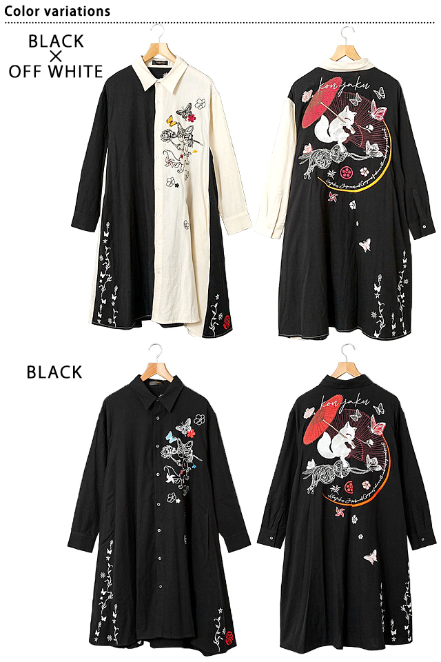 華麗なるシャツワンピース 今昔 レディース KJ-29155 和柄 和風 刺繍 狐 キツネ きつね