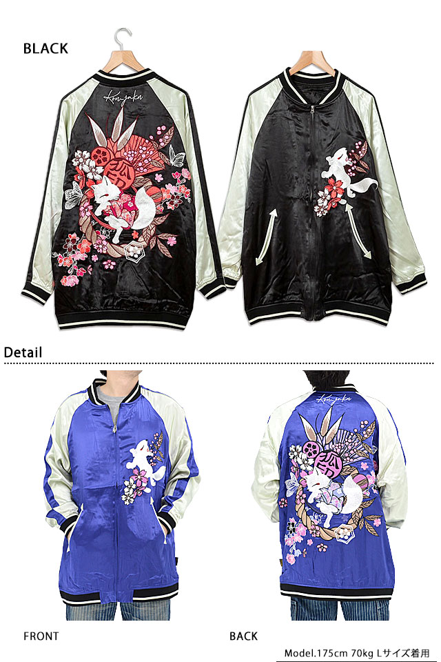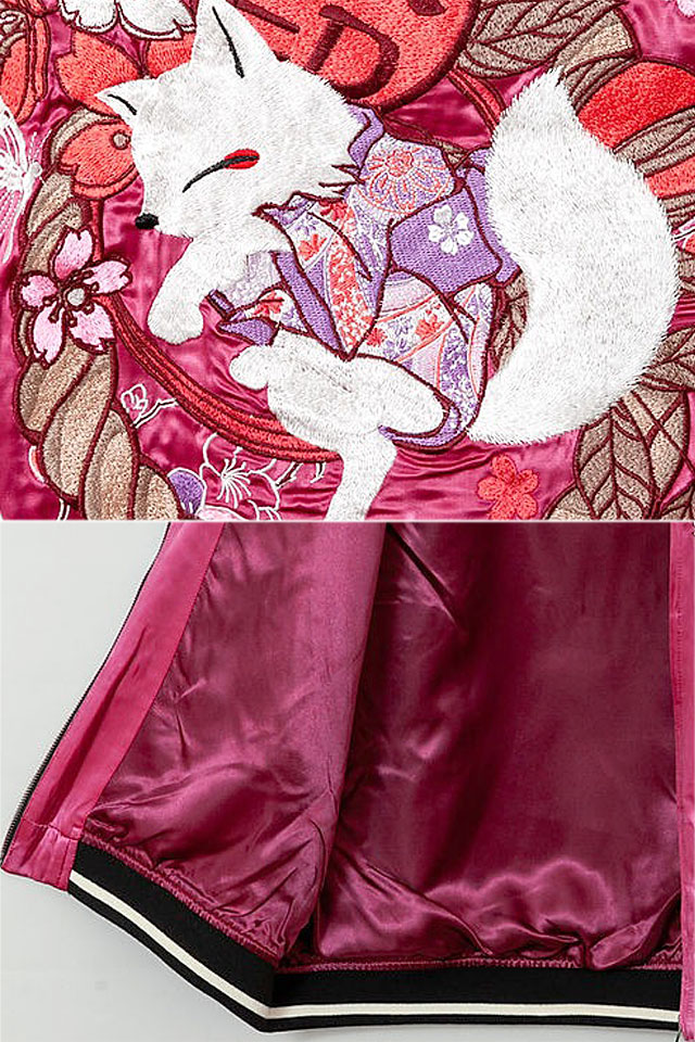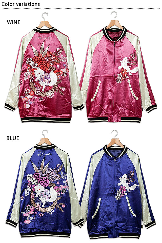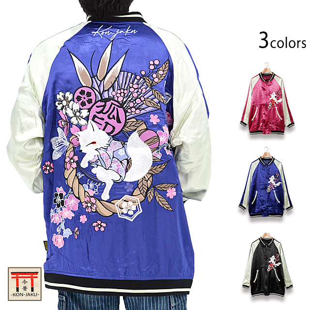 愛らしい狐のキャラクターが主役の【今昔】から「着物狐BIGスカジャン(KJ-29171)」のご紹介です。 今昔から大きめサイズで着るBIGスカジャンが登場しました! ボディーにはレーヨンサテンを採用。 | ||||||||||||