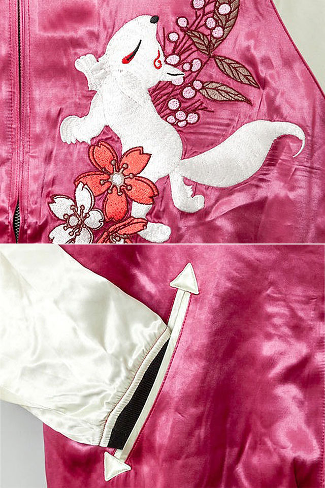 背中の刺繍はゴージャスに仕上げ、スカジャンらしい華やかなデザインにまとめられています。