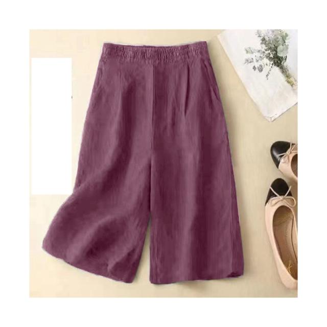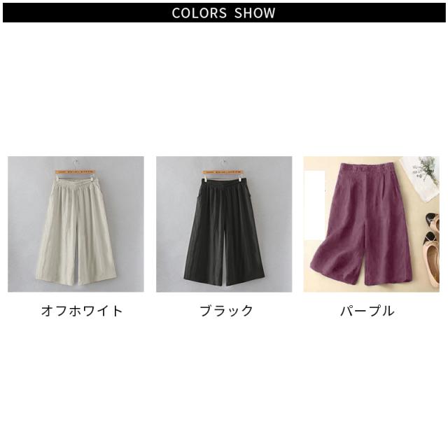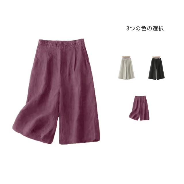 送料無料 ガウチョパンツ パンツ 七分丈 レディース スカーチョ 綿 膝丈 ワイドパンツ 大きいサイズ ボトムス 体型カバー ゴム フレアパンツ ゆったり チノパンツ 薄手 着痩せ カジュアル オフィス お出かけ