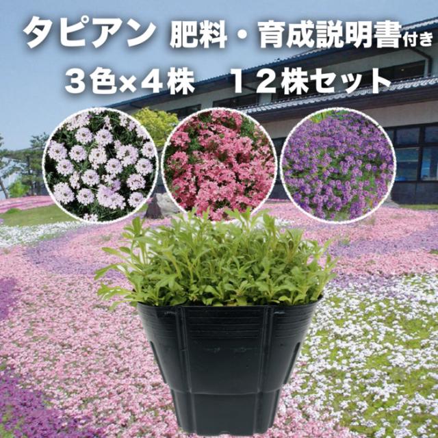 【レビュー特典あり】 タピアン 3色×各4株 合計12株 9cmポット苗 肥料付き 3号 バーベナ属 サントリーフラワーズ グランドカバー 雑草対策