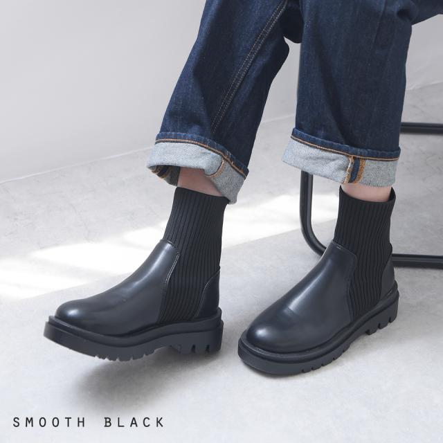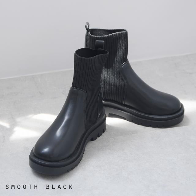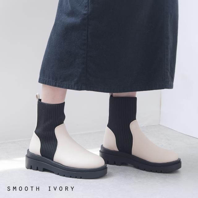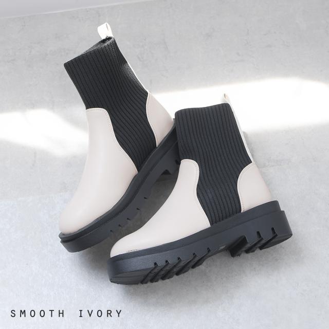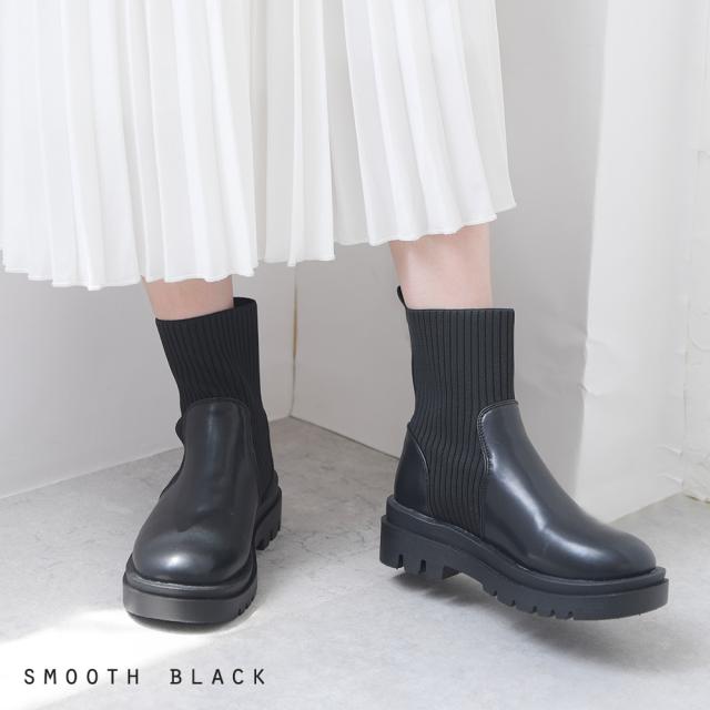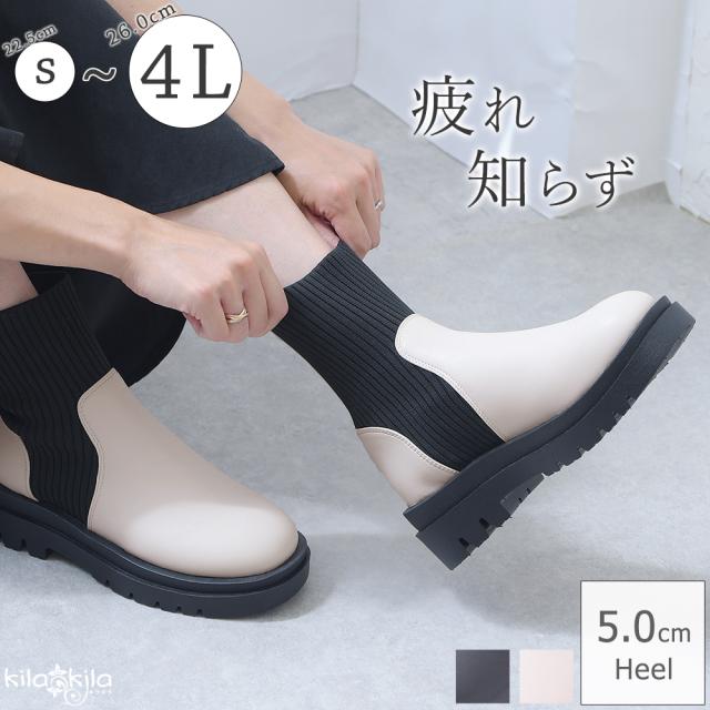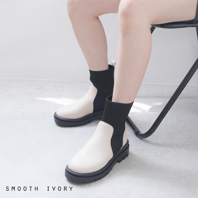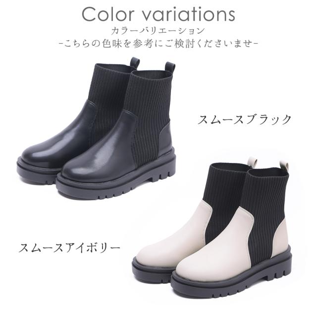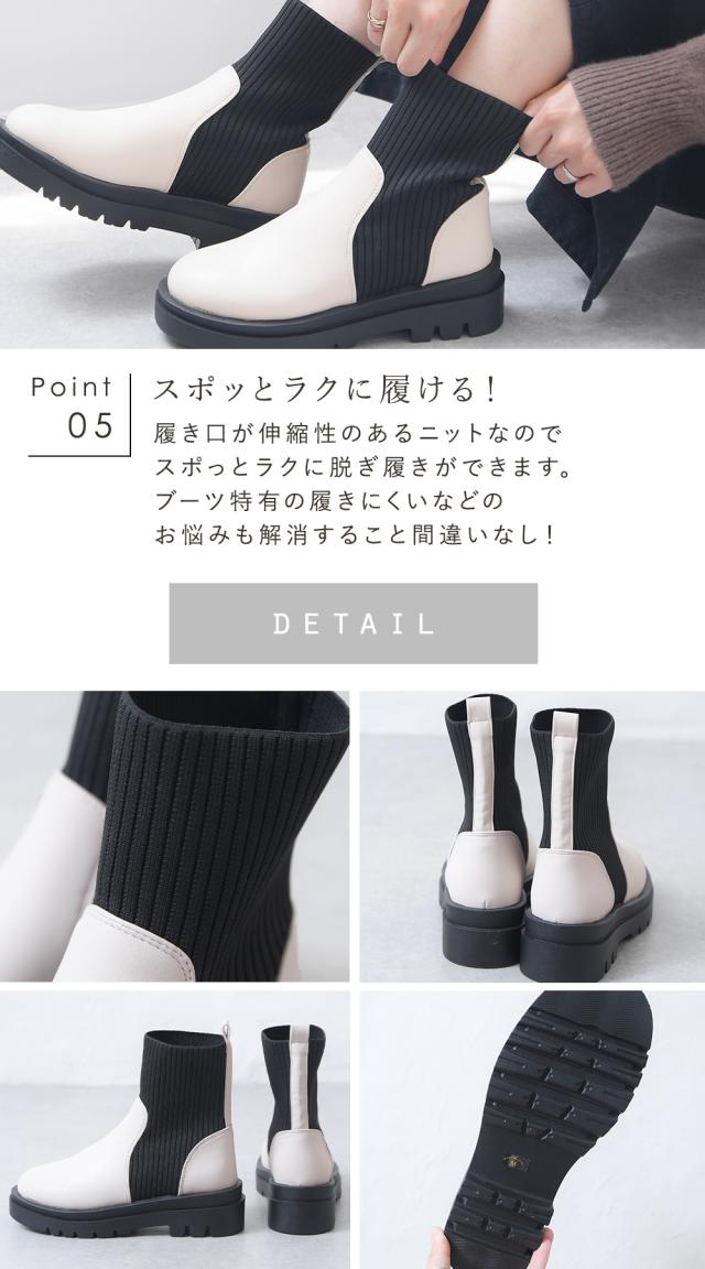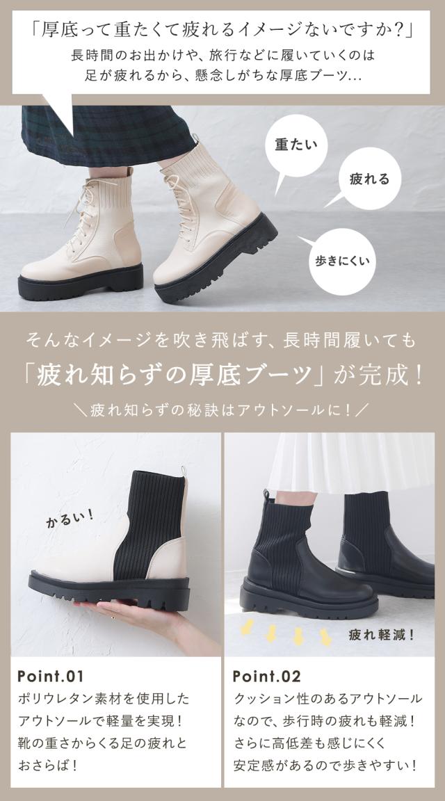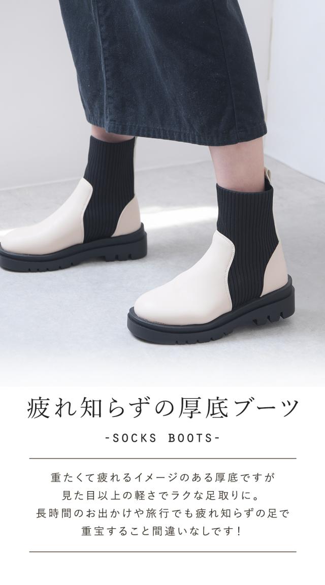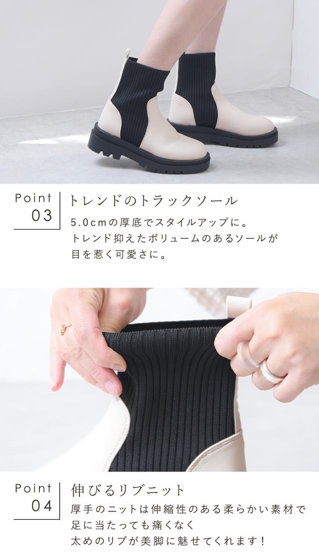 ブーツ リブ レディース ショートブーツ ニットブーツ ソックスブーツ フラット トラックソール 厚底 5センチヒール 軽量 歩きやすい 大きいサイズ 通年 レディース靴 靴