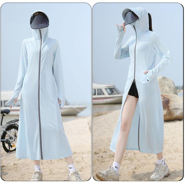 uv パーカー ロング レディース ツバ付き 冷感パーカー ラッシュガード ポケット 超ロング 体型カバー UVカット 紫外線対策 全身カバー