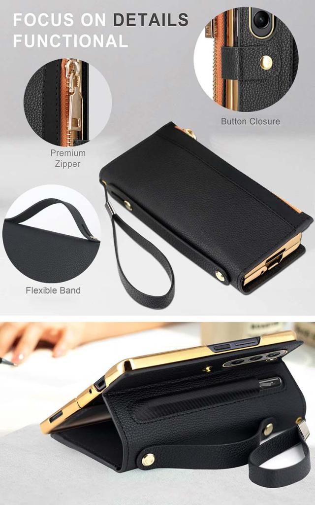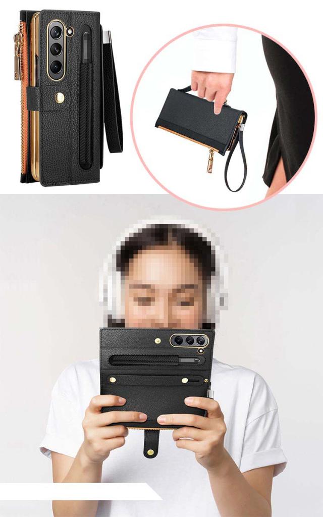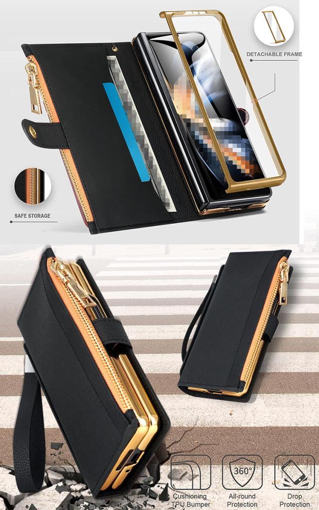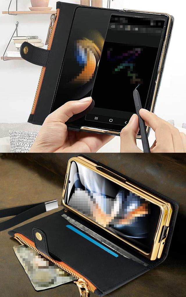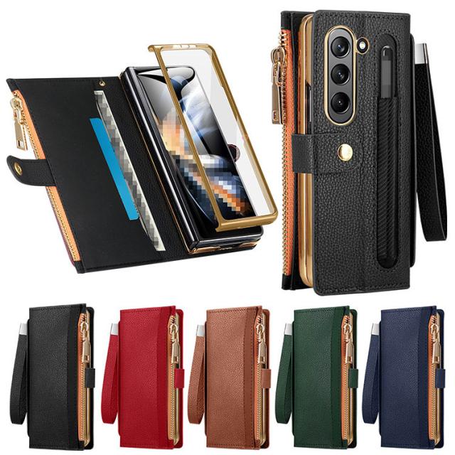 Galaxy Z Fold 5 ケース カバー 手帳型 PUレザー 画面保護強化ガラス一体型 スタンド機能 ペン収納 カード収納 ストラップ付き ストラップ付き サムスン ギャラクシー Z フォールド5 アンドロイド ファスナー付きポケット スマートフォン/スマホケース/カバー