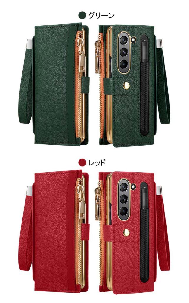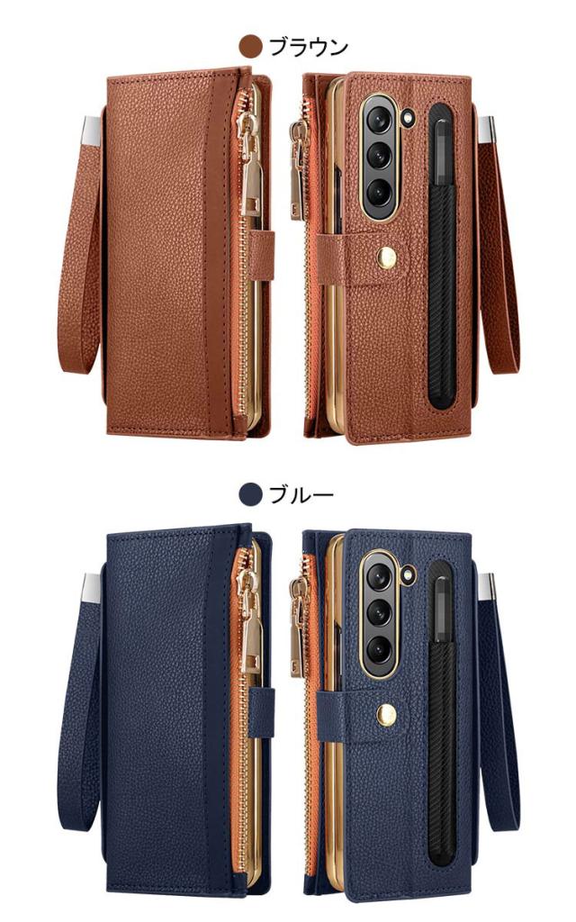 Galaxy Z Fold5 ケース カバー 手帳型 PUレザー 画面保護強化ガラス一体型 スタンド機能 ペン収納 カード収納 ストラップ付き ストラップ付き Samsung サムスン ギャラクシー Z フォールド5 アンドロイド ファスナー付きポケット スマートフォン/スマホケース/カバー