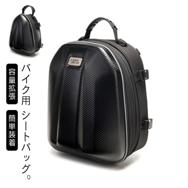 シートバッグ バイク 大容量 拡張機能あり バイク ツーリングバッグ シートバック バイク リアバッグ 防水 オートバイバック 仕分ポケット内蔵 撥水 耐傷 軽量 簡単固定 レインカバー付き ブラック バイク用品 バイク用シートバッグ 装着簡単