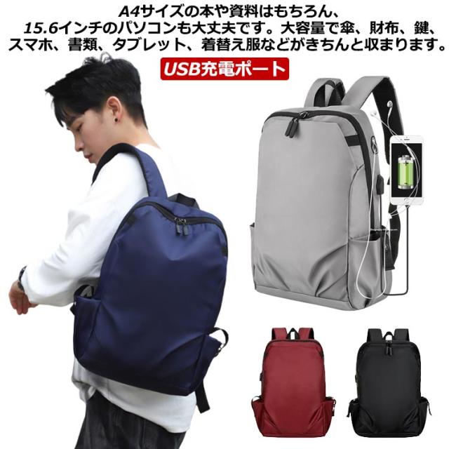 リュック ビジネスリュック 送料無料 ビジネスバックパック メンズバックパック パソコンリュック USB充電ポート掲載 大容量 PCバッグ ノートパソコン 旅行 出張 通勤 男性用 撥水 レッド ブルー ブラック グレー
