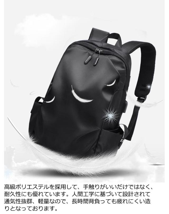 | A4サイズの本や資料はもちろん、15.6インチのパソコンも大丈夫です。大容量で傘、財布、鍵、スマホ、書類、タブレット、着替え服などがきちんと収まります。 良質なファスナーを使用しているため滑らかで使いやすく、耐久性に優れています。丈夫で軽く、柔らかなポリエステル素材を使用しているため、長くお使い頂けます。肩からベルトがずれ落ちることがなく、体にフィットして背負えます。 高級ポリエステルを採用して、手触りがいいだけではなく、耐久性にも優れています。人間工学に基づいて設計されて通気性抜群、軽量なので、長時間背負っても疲れにくい造りとなっております。 いつでもサッとUSB充電可能。あなたがお持ちのバッテリ一と接続して充電しながら楽しくスマ一トに観光をすることができます。 背面部分はスーツケースとセットアップができる構造になっており、持ち歩く便利で、出張や旅行など幅広く使用できます。 | |