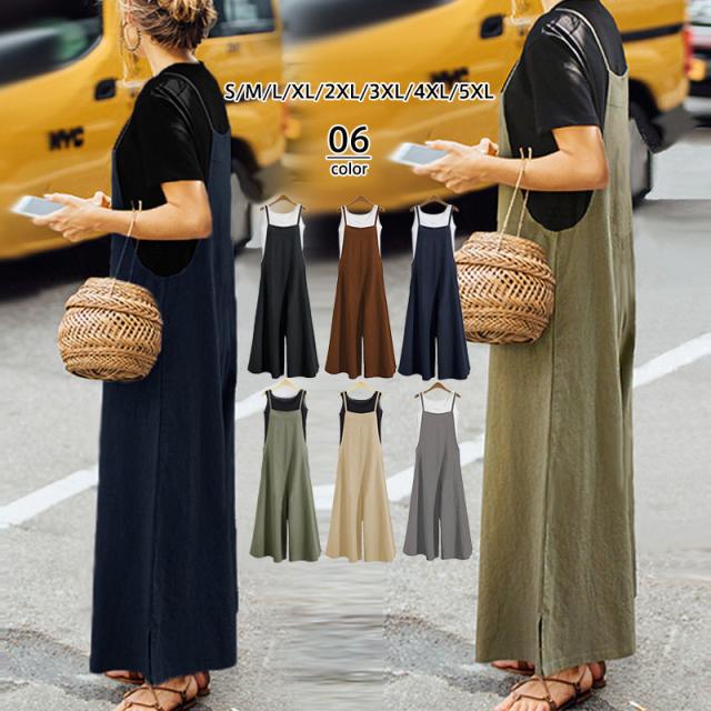ゆったり 無地 サロペット オールインワン オーバーオール レディース ワイドパンツ ガウチョパンツ ボトムス パーティー フォーマル 50代 40代 30代 20代 きれいめ 体型カバー コーデ 春 夏 秋 冬 おしゃれ 送料無料 カジュアル シンプル ジャンパースカート ロングワンピース ロング丈 ワンピース 大きいサイズ 着痩せ OL ノースリーブ ドレス