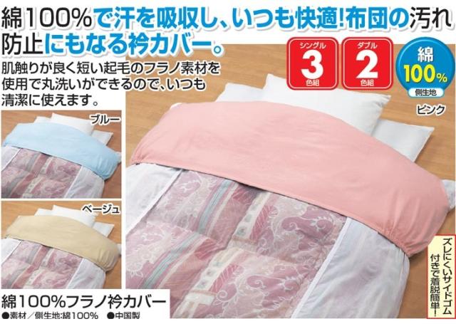 掛け布団用 襟カバー シングル 3色組 綿100% 襟 カバー 綿フラノ 衿カバー ピンク+ブルー+ベージュ 布団 汚れ防止 洗える 送料無料