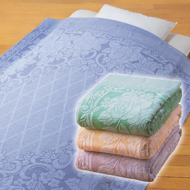 安心の高品質。今治産の花柄タオルケット。凹凸のある花柄が上品な、吸水性に優れたタオルケット。