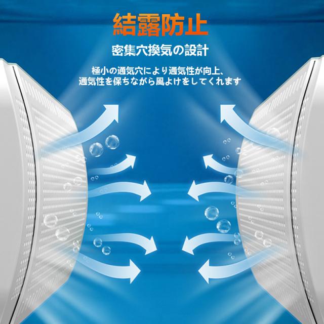 風よけカバーは不快な直撃風を解消し、乾燥や頭痛などの悩みにさよなら、快適な室内環境を作ってくれます。密集穴換気の設計は冷却効果に影響しません。自由にフロント板を調節し、エアコンの直撃風を解消して直風による身体への負担をやわらげ、健康な生活を与えて、風邪を引く可能性がおおきく低くなります。