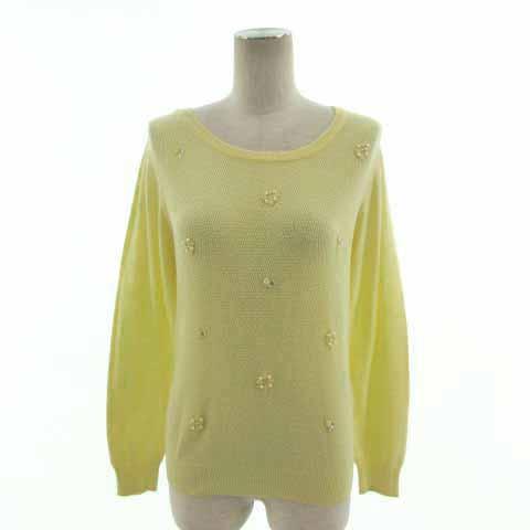 【中古】インデックス INDEX ニット 長袖 切替え ビジュー パール コットン混 イエロー 黄色 M レディース