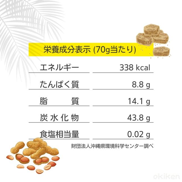 《 おすすめの楽しみ方 》 ● 定番のお茶請けに さんぴん茶はもちろん、コーヒーや紅茶との相性も抜群です。 ● お酒のお供に 泡盛やウイスキーなど、度数の強いお酒の最高のアテになります。 ● 砕いてトッピングに 袋の上から砕いてアイスやヨーグルトへ。ガリガリ食感が最高のアクセントに! |
