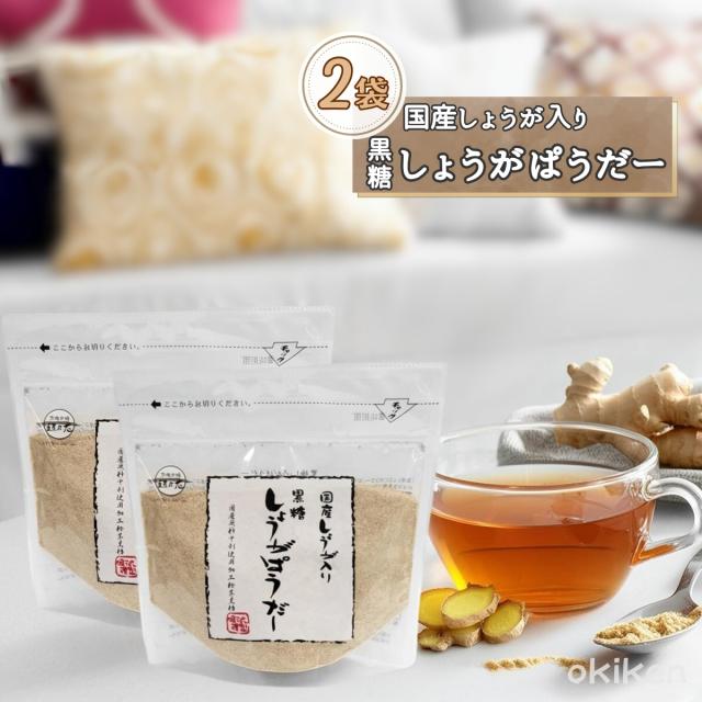 生姜湯 黒糖しょうがぱうだー 160g×2袋 国産生姜 100% 沖縄産 黒糖 しょうが湯 生姜パウダー 粉末 しょうがパウダー 料理 調味料 温活 ポイント消化 メール便発送 送料無料 黒糖本舗垣乃花