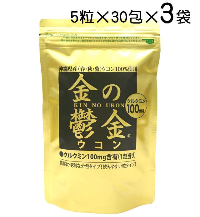 金の鬱金 ウコン(粒タイプ)5粒×30包×3袋〔ポスト投函お届け 送料無料〕秋ウコン・春ウコン・紫ウコン