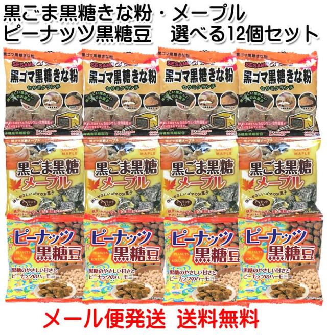 黒ゴマ黒糖きな粉・黒ゴマ黒糖メープル・ピーナッツ黒糖豆 選べる12小袋セット 黒ごま