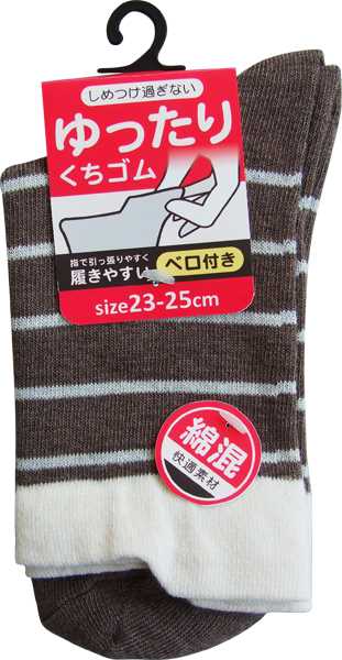 ●品名・婦人 綿混ボーダー柄口ゴムユッタリソックス