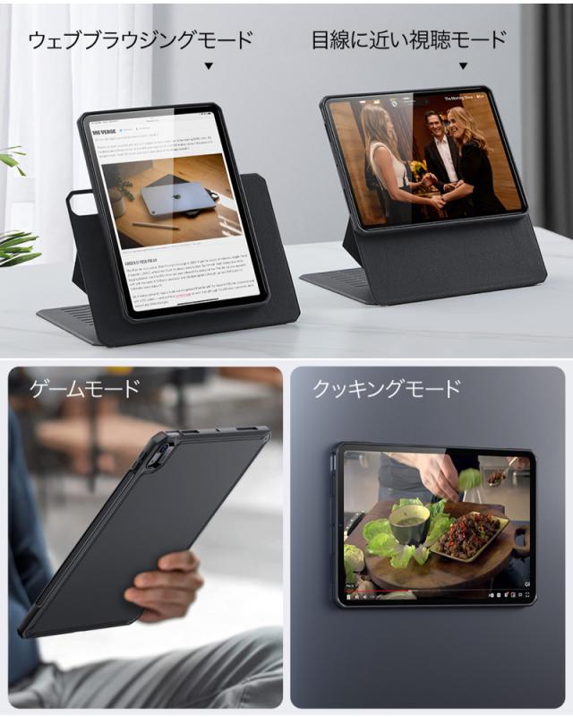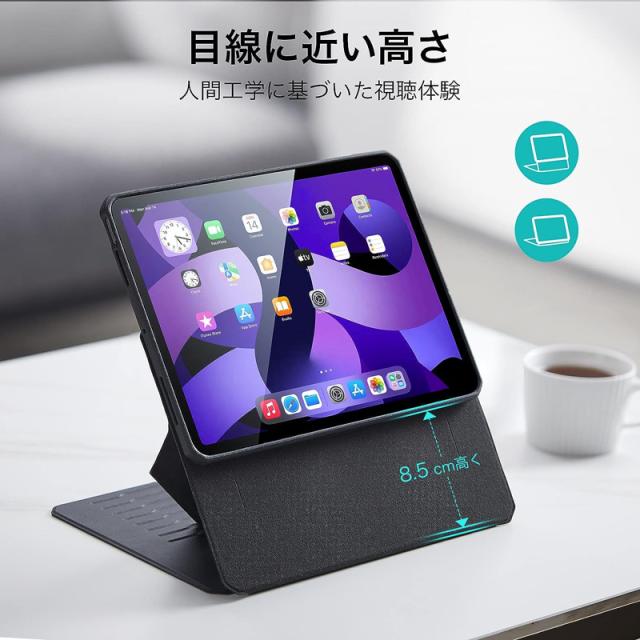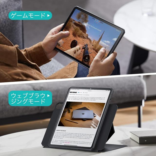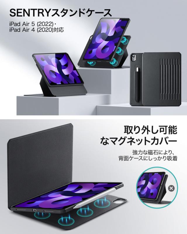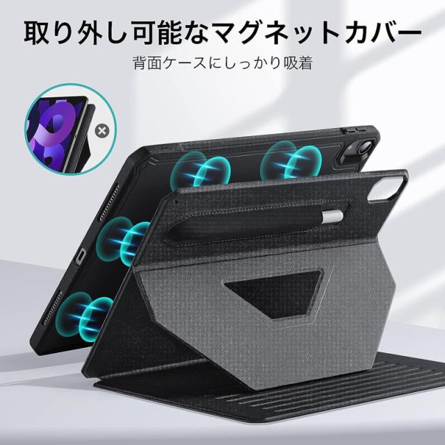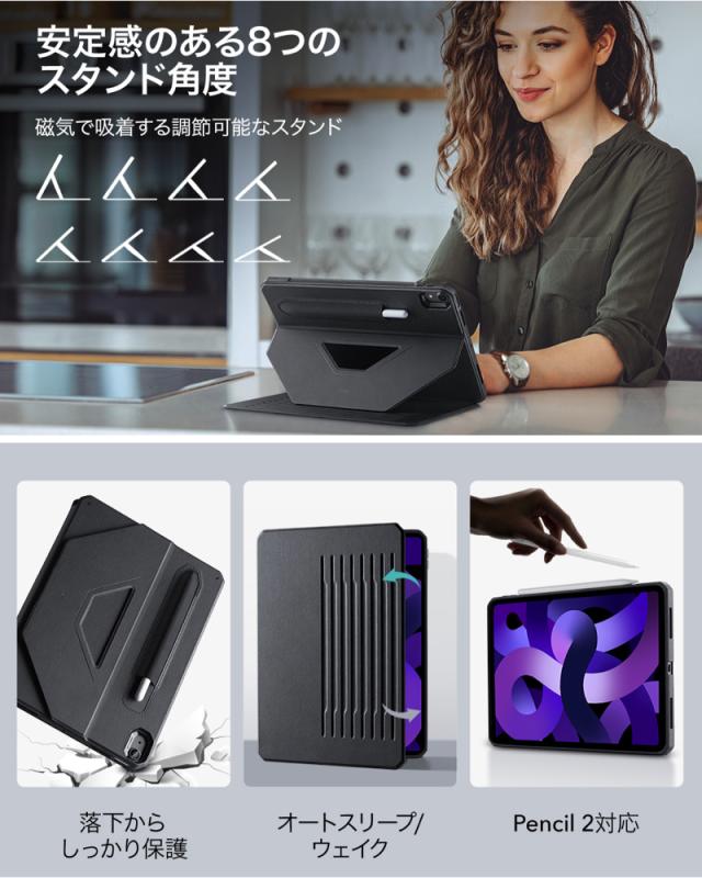 ESR iPad Air11インチ 2025 Air5 ケース 第5世代 スタンドケース iPad Air4 ケース 2020 しっかり保護 取り外し可能なマグネットカバー 調節可能な縦置き 横置きスタンド 目線に近い高さ 8つのスタンド角度 ブラック