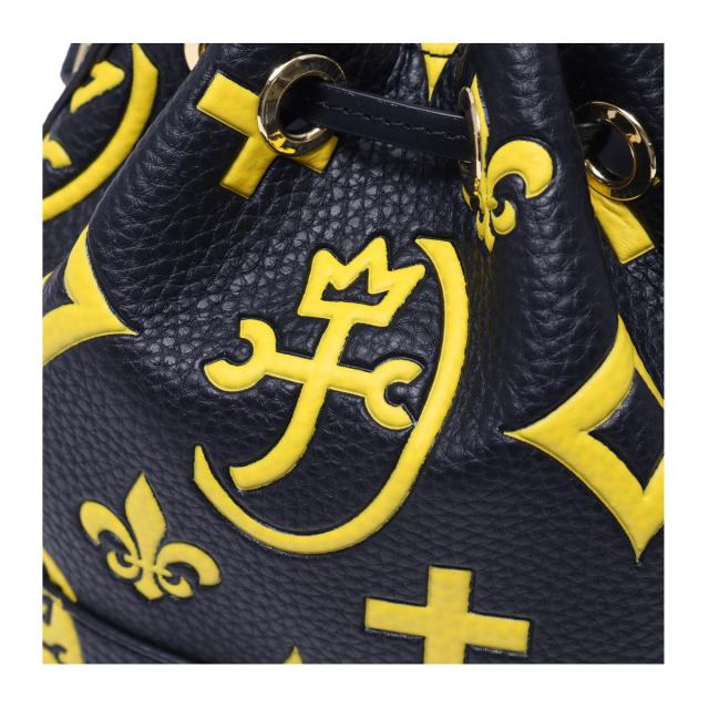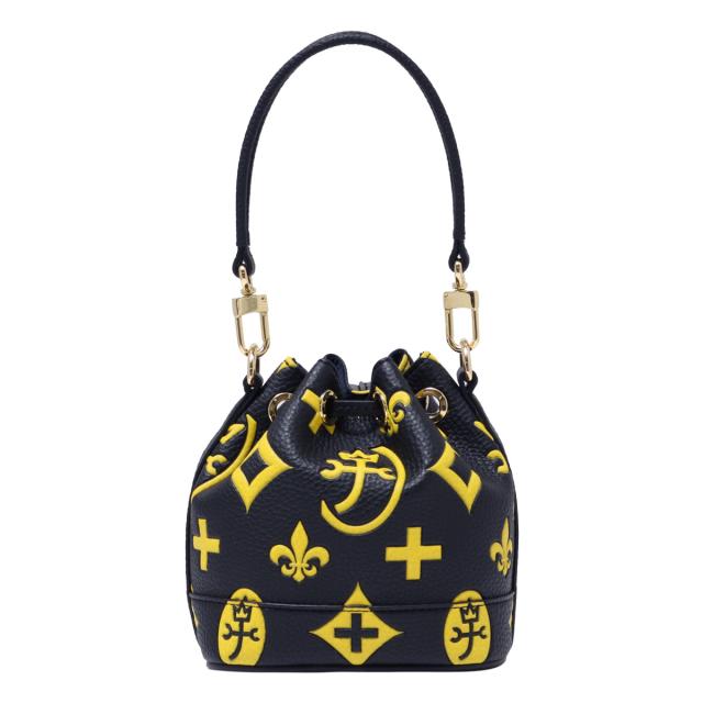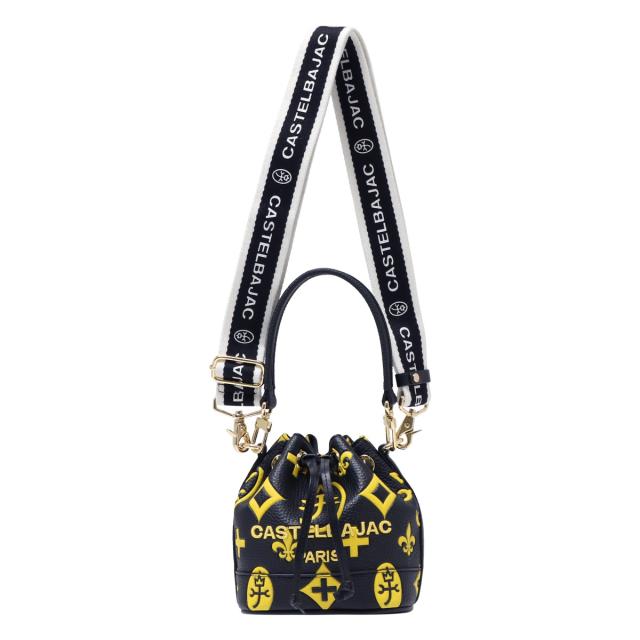 カステルバジャックのモノグラムを大胆にプリントした巾着バッグです。「ちょい派手」をイメージした大人の遊び心あるデザインに仕上げました。