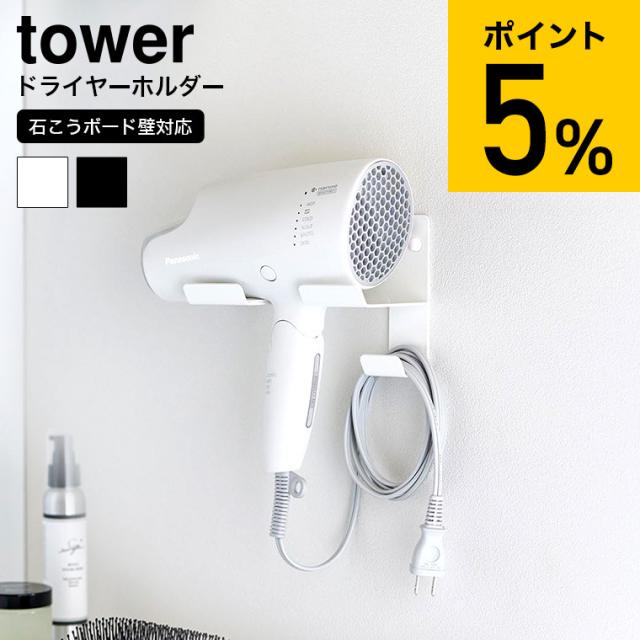 tower 山崎実業 石こうボード壁対応ウォールドライヤーホルダー タワー 4508 4509 ホワイト ブラック 壁掛け ドライヤースタンド ドライヤーホルダー ドライヤー 収納 ラック 石膏ボード タワーシリーズ