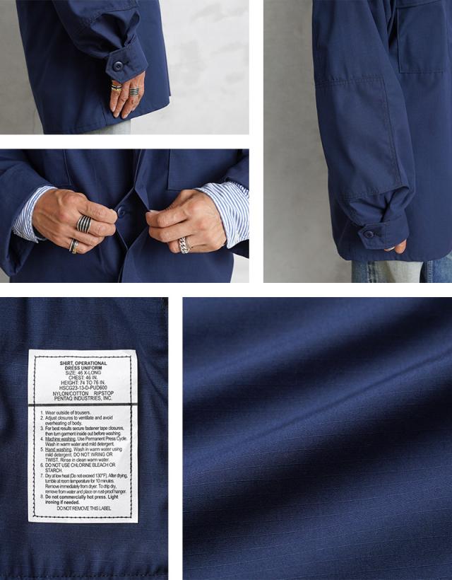 実物米軍放出でU.S.COAST GUARD(米国沿岸警備隊)のオペレーションジャケットが入荷しました。こちらのロゴ刺繍なしタイプはハーフコート感覚でゆったり着れるサイズ感の個体が多く入荷しています。アメリカ軍の一部門でもある米国沿岸警備隊(U.S. COAST GUARD/USCG)で使用されているOPERATIONAL DRESS UNIFORM(オペレーショナル ドレス ユニフォーム)通称ODUと呼ばれるジャケットで、沿岸警備隊とはいえ、世界各国の海軍の能力と規模に匹敵する、最大かつ最も強力なのが米国沿岸警備隊です。右胸のU.S.COAST GUARDのロゴ刺繍が無いタイプになりますので、よりシンプルなデザインを求める方にはイチオシです!フロントの開閉はBDUジャケットと同じくボタンが露出しない比翼仕立てのボタン留めです。ブルーに近いネイビーが使いやすく、手に入りにくいジャケットです。この機会に是非どうぞ。