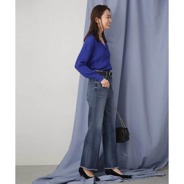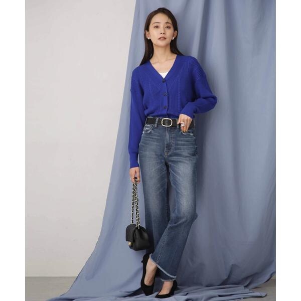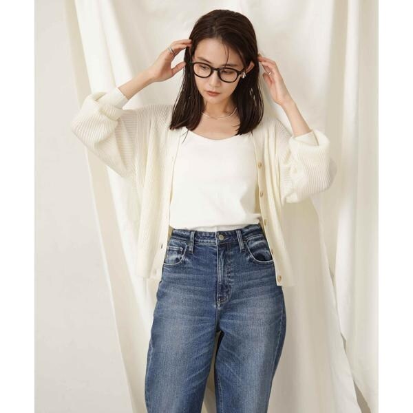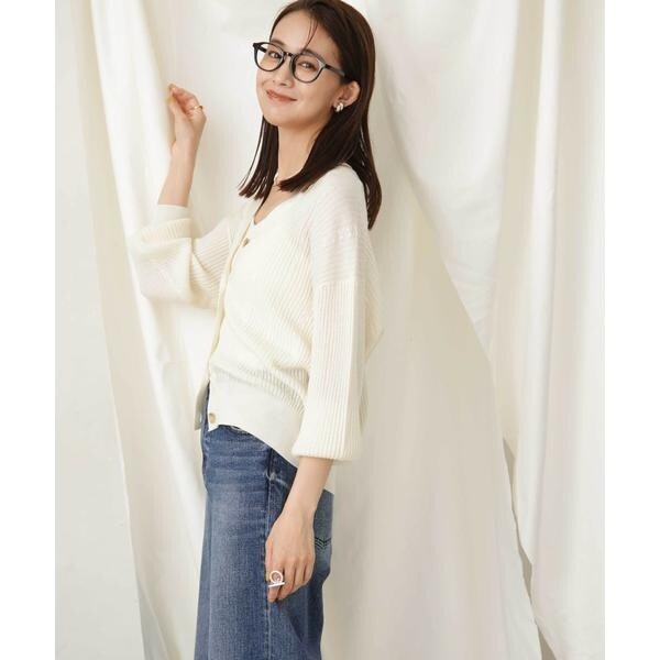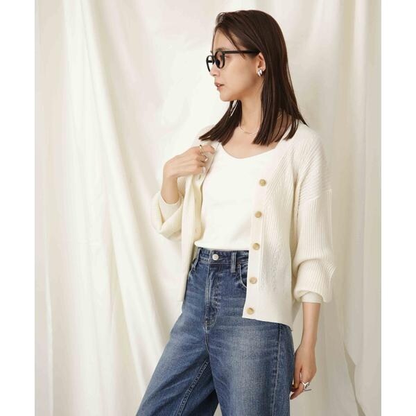 ・顔周りをスッキリ見せるVネックカーディガン