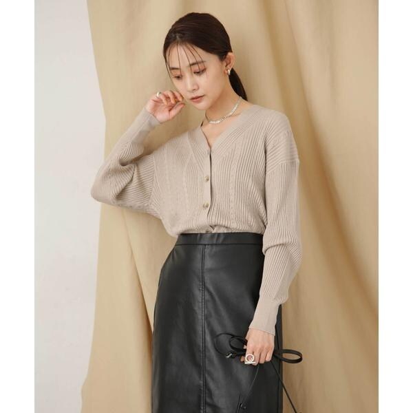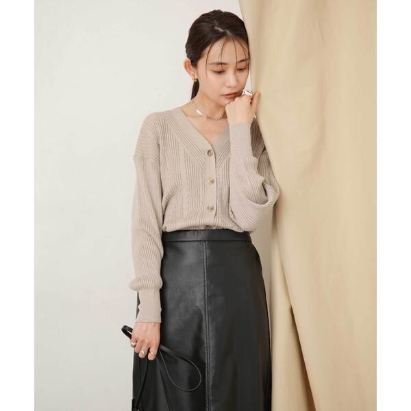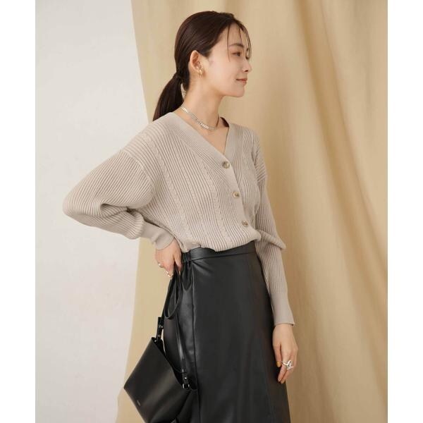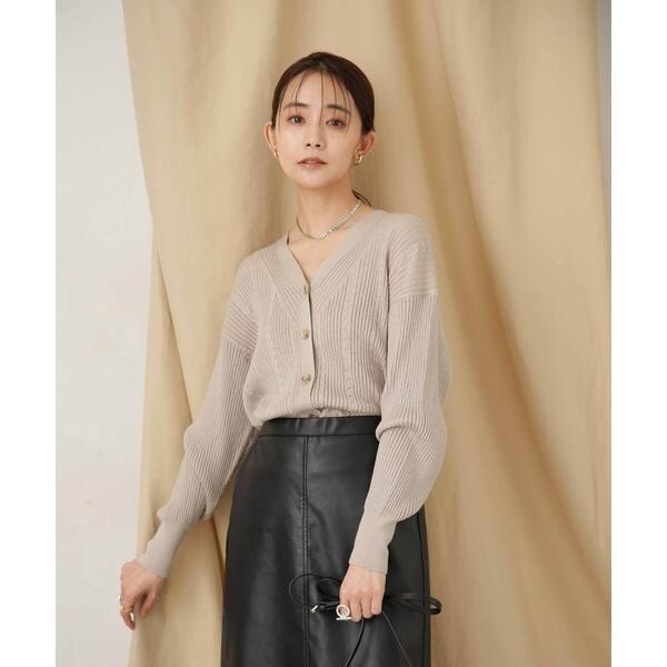 毛玉レスニットリブケーブルカーディガン