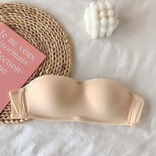 ワイヤー入り チューブトップブラ レース コットン 綿 ストラップレス カップ付き ベアトップ オフショルダー 脇肉 谷間