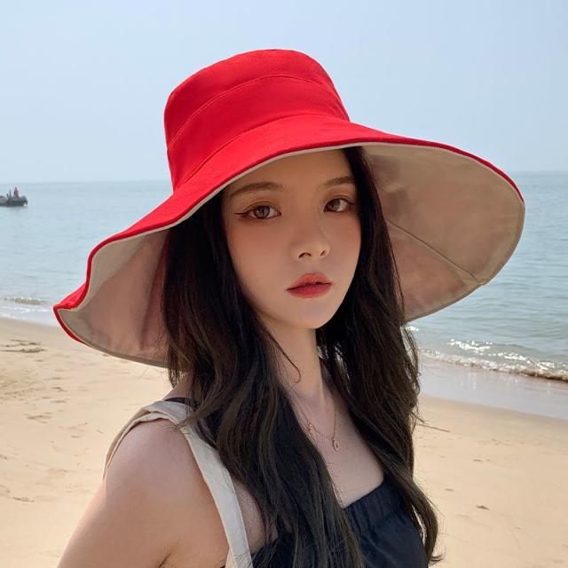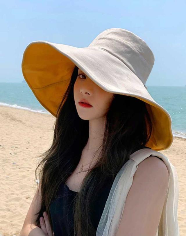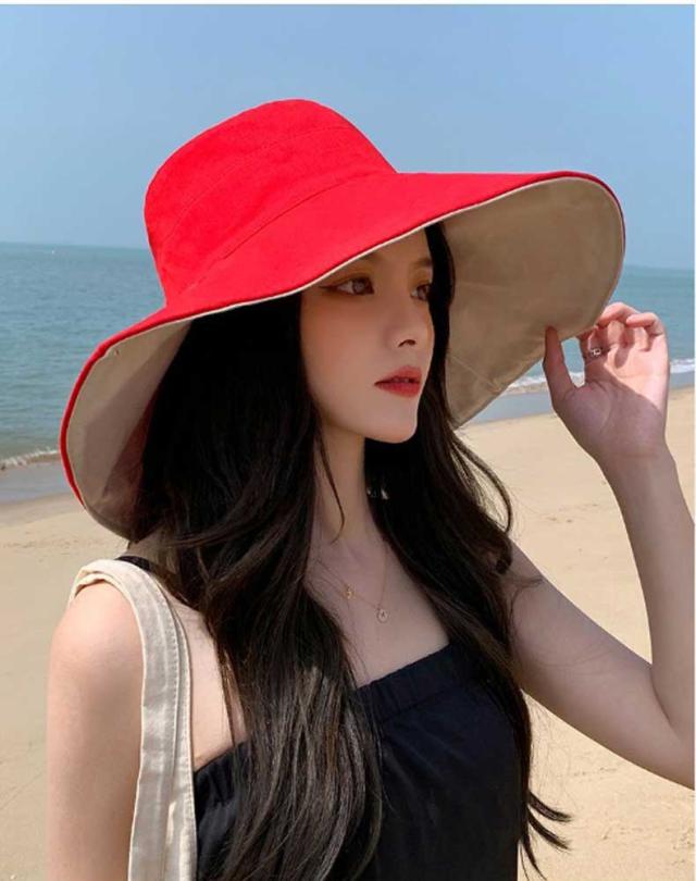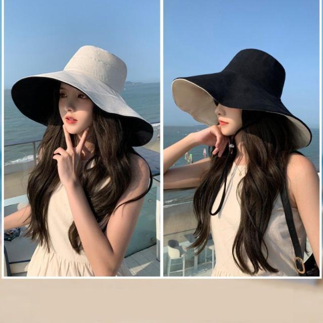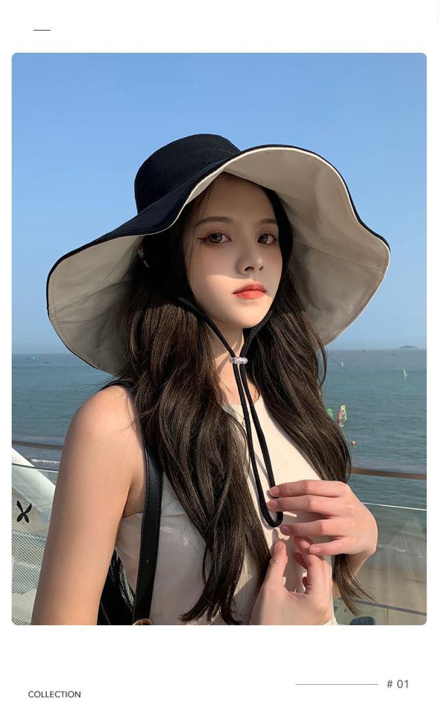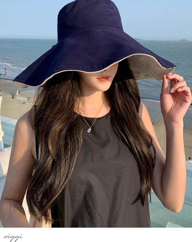 帽子 レディース 折りたたみ リバーシブル ワイヤー入り つば広 自転車 UVカット 小顔効果 大きいサイズ 遮光 あごひも ボタンで留めれる コンパクト 完全遮光 日焼け止め 旅行 通勤 春 夏 55-62cmサイズ
