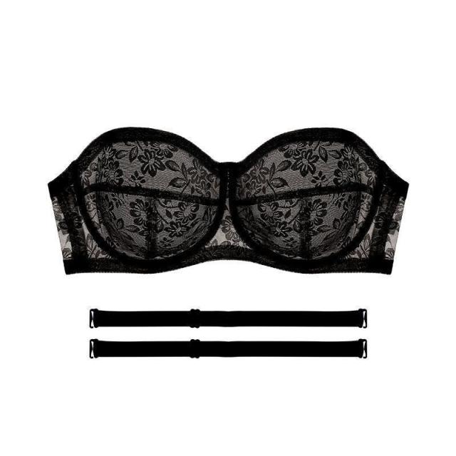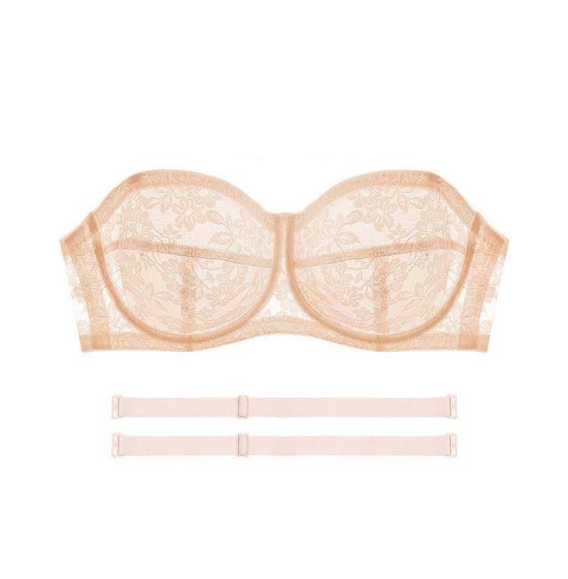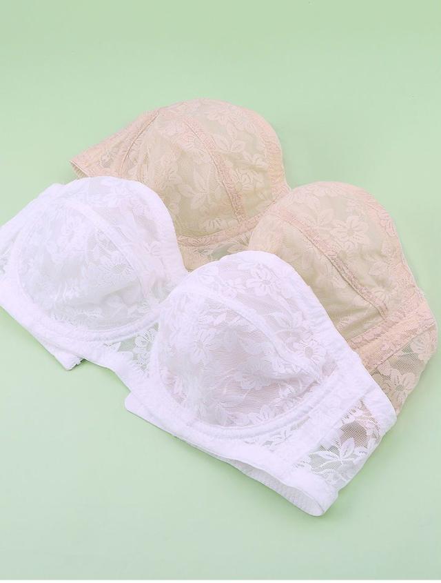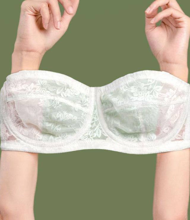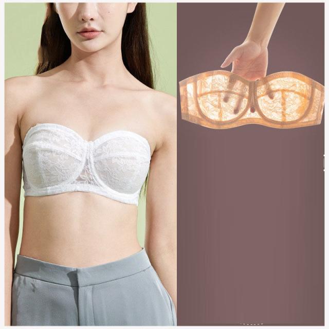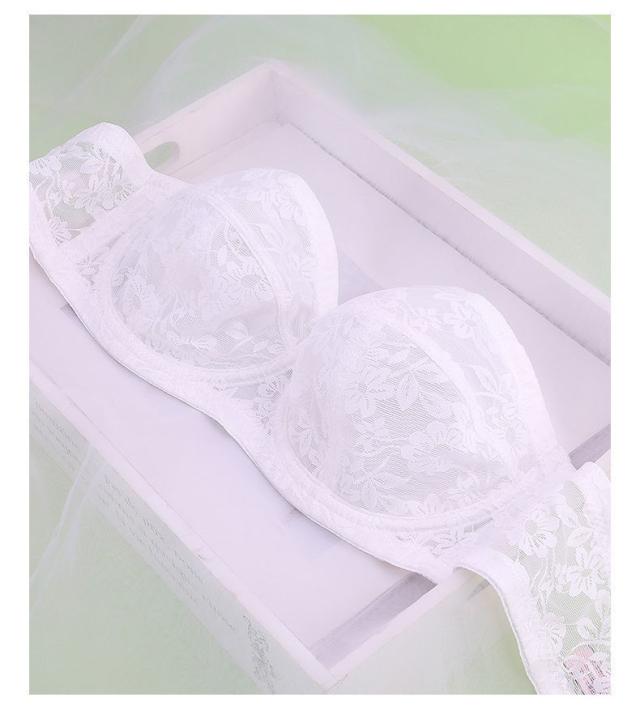 超軽薄 通気性抜群 紐なしブラ 胸を小さく見せる ブラジャー 肩紐なし ブラ 小さく見せるブラ 総レース 美胸 脇肉 落ちない ずれない