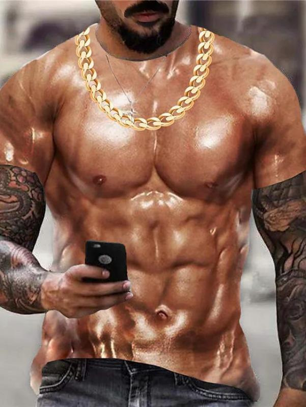 筋肉Tシャツ メンズ 半袖 カットソー 面白デザイン 派手 仮装 イベント 衣装 スリム フィット お揃い ダサいtシャツ 3Dデジタル プリント 面白い