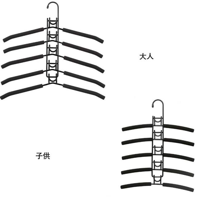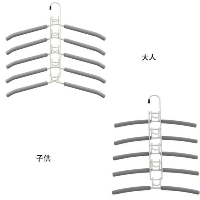 全2タイプ!子供用 大人用 ハンガー すべらない ハンガーラック 5段 省スペース 多機能ハンガー 衣類ハンガー ダブルフック 便利グッズ クローゼット 押し入れ収納 収納力アップ 5段 着脱式 360°回転