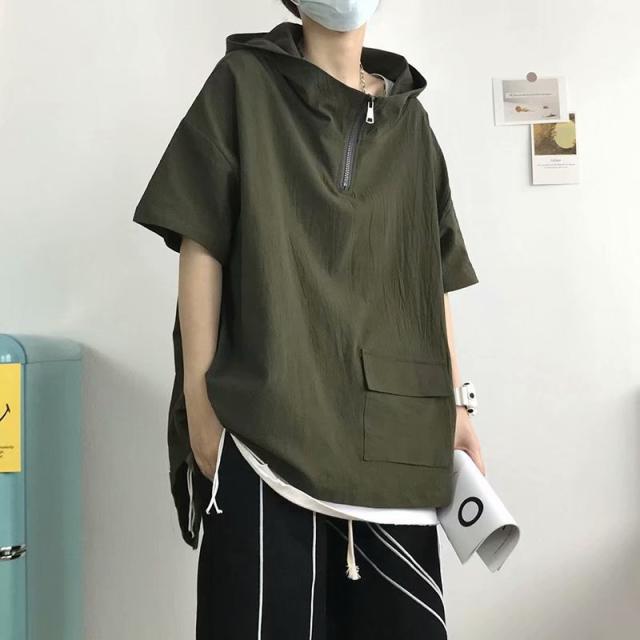 半袖パーカー メンズ パーカー プルオーバー トップス 夏 フード 半袖 半ジップパーカー レディース 薄手 男女兼用 シンプル カジュアル 夏服 夏