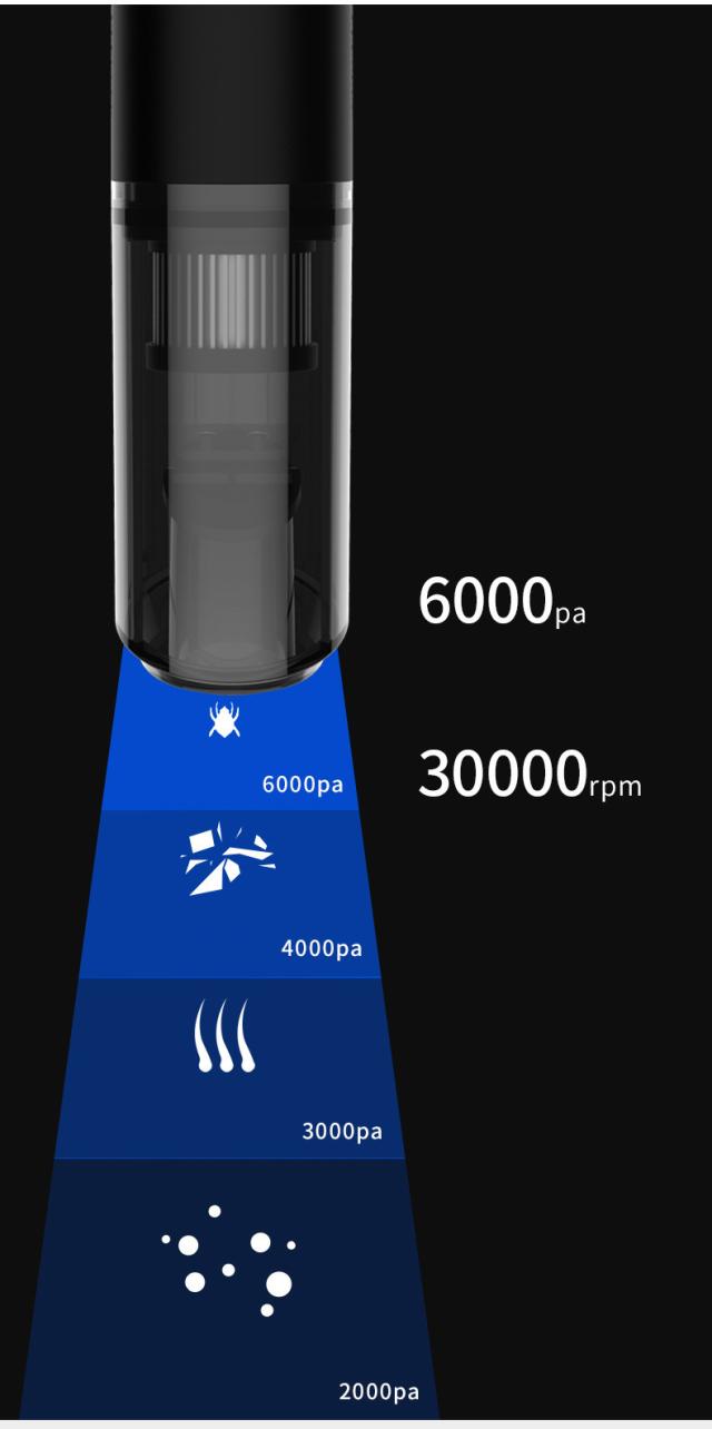 | サイズについての説明 | 【商品内容】本体、フィルタ×1、充電ケーブル×1、すき間ノズル×1、ブラシノズル×1、補助コネクタ×1 サイズ:36.8*6.5*3.5cm 真空圧:6000Pa 出力:約120W バッテリー容量:2000mAh |