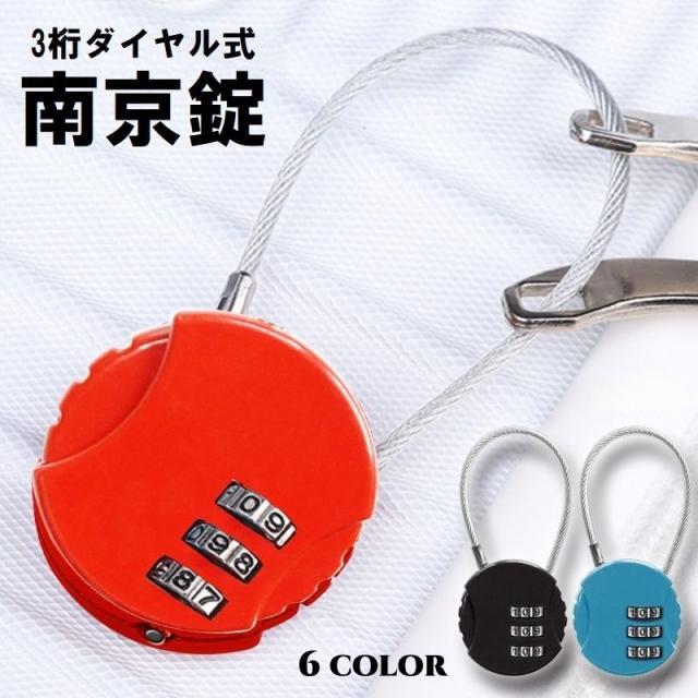 南京錠 ダイヤル式 3桁 ワイヤーロック 鍵 カギ 防犯 盗難防止 スーツケース バッグ 旅行 海外 国内 カラフル おしゃれ