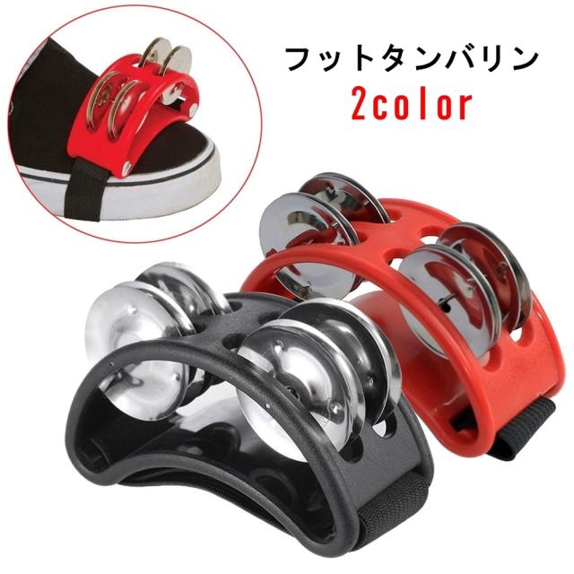 フットタンバリン フットパーカッション フットタンブリン 足用タンバリン 足タンバリン 楽器 半円 半月型 ゴムバンド レッド