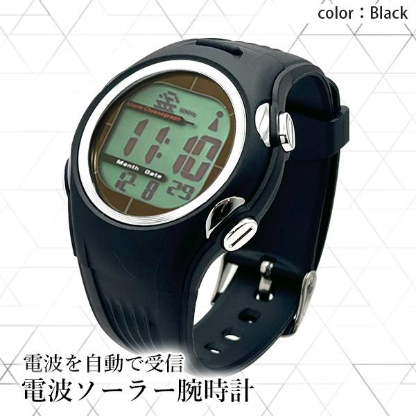 腕時計 電波ソーラー腕時計 ブラック 防水 ソーラー (管理S) 送料無料
