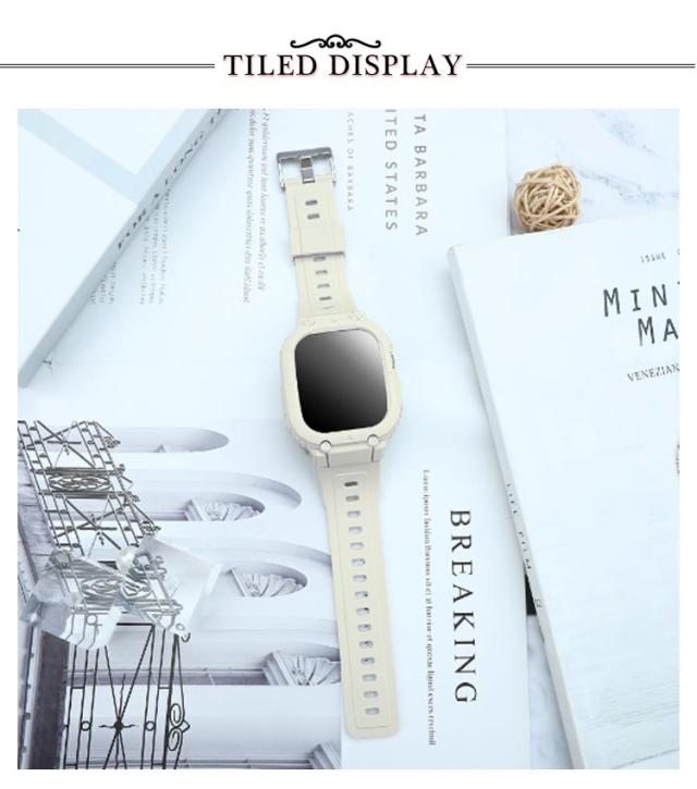 | サイズについての説明 | 40mm 44mm: Apple Watch Series4 5 6 SE2(第二世代) SE(第一世代) 41mm 45mm: Apple Watch Series 7(第七世代) Apple Watch Series 8(第八世代) 49mm : Apple Watch Ultra (49mm) ※AppleWatch本体は別売です。 ご注意点: 1、Apple Watchの電源を切る後、ケースの中にあるラバーを取り付けます。その際液晶部分に干渉しないようにご注意ください。 2、リューズの溝と溝をしっかり合わせてセットします。※溝がしっかり合っていないとボタンの動作が不可となります。 3、表にラバー等がはみ出していないかを確認します。裏蓋のリューズのくぼみに合わせて蓋をします。※合っていないと動作不可となります。 本体装着方法: 付属のラバーケースをアップルウォッチにつけて、ケースにはめます。 |