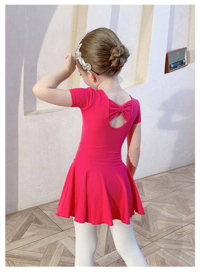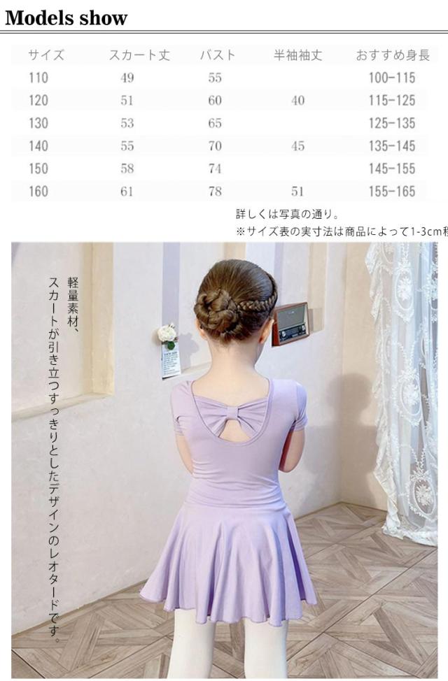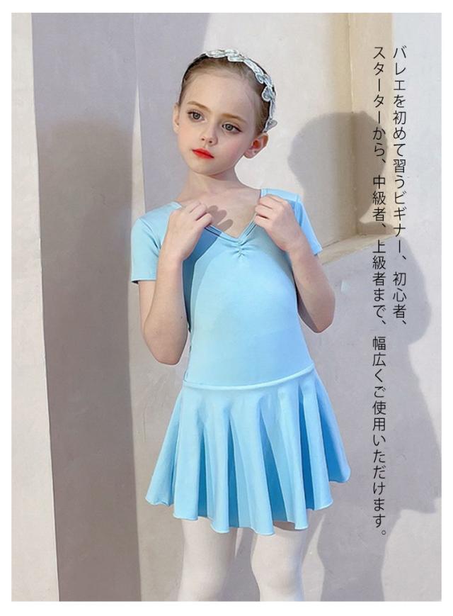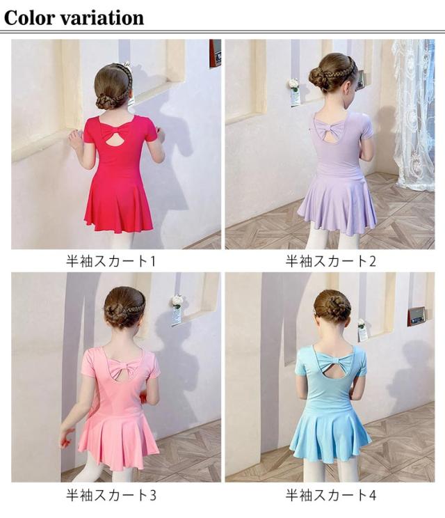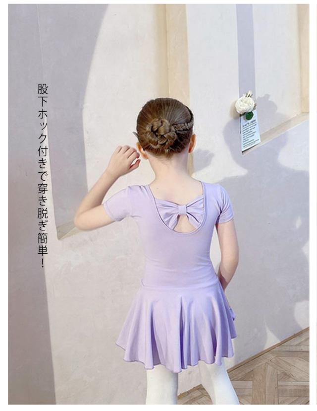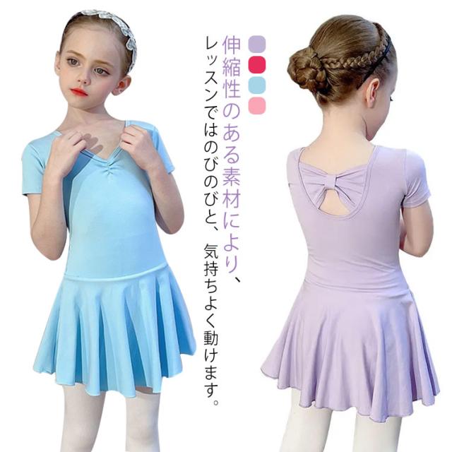 スカート付き 子ども ジュニア バックリボン バレエ バレエレオタード キッズ ピンク 子供 120cm ダンス 半袖 衣装 バレエ用品 体操 ブルー ダンスウェア 110cm スカート付き 130cm 140cm 150cm レオタード