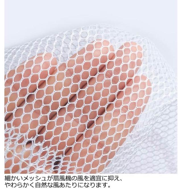 | お子さまやペットがいるご家庭でも安全に扇風機が使用できる扇風機カバー。 羽への埃の付着が少なくなり掃除なしでそのまま次のシーズンまで保管できます。 細かいメッシュが扇風機の風を適宜に抑え、やわらかく自然な風あたりになります。 小さなお子さんやペットなどが隙間から手を入れるのを防ぐこともできます。 裏までかかる、子供が後ろから手を入れる心配がなく安心。 伸縮性に優れているゴム仕様で、裏側から覆いかぶせるように簡単に取り付けられます。 紐で固定するタイプのカバーです。 汚れが気になったら水洗いすることもできるので、衛生的に使っていけるシンプルな扇風機カバー | |