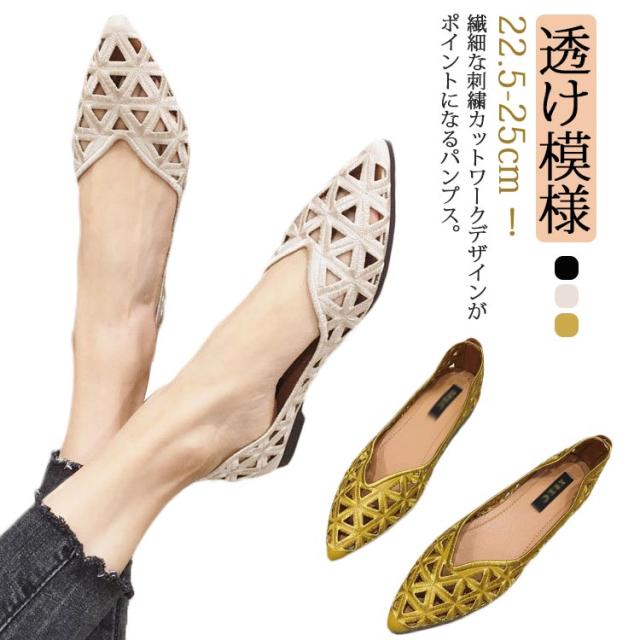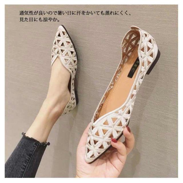 痛くない カットワーク 夏 パンプス パンプス ローヒール 透かし模様 フラットパンプス 走れる フラットパンプス フラットシューズ バレエシューズ ぺたんこ 歩きやすい 合成皮革 刺繍 柔らか 軽量 サンダル 脱げない カジュアル おしゃれ フェミニン ポインテッドトゥ