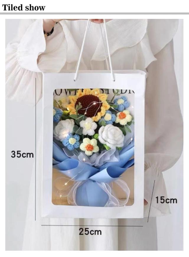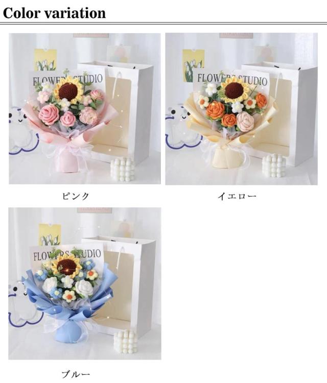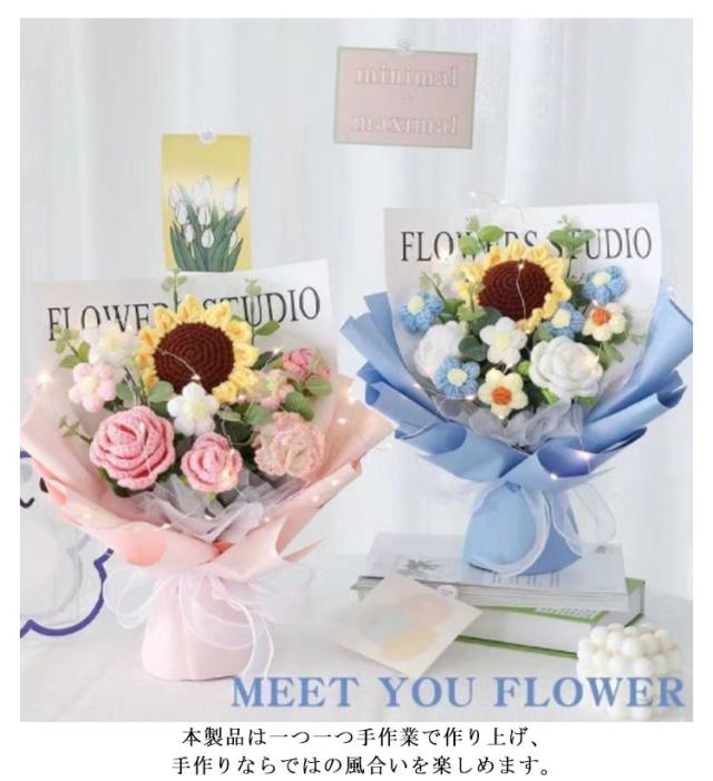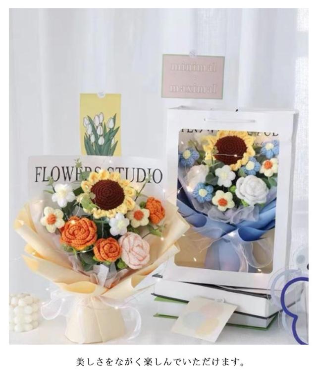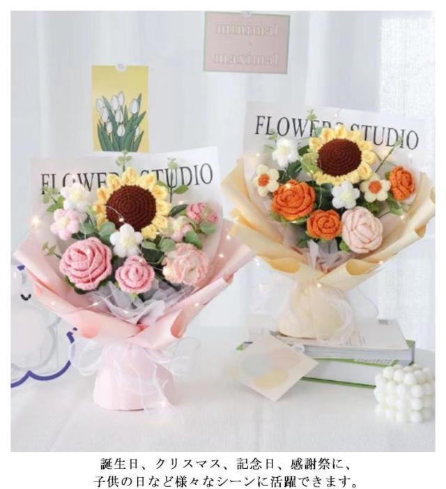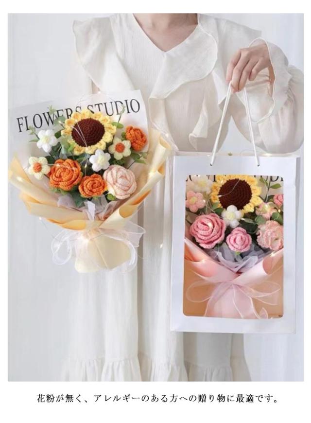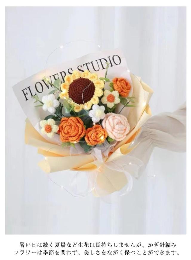 入学 新生活 かぎ針編み 女性 ぬいぐるみ花束 引越し カラフル ローズ 卒業 編み物 お祝い 敬老の日 造花 完成品 バラ 花束 ひまわり 誕生日 プレゼント デート用 彼女 枯れない花 発表会 結婚式 LEDライト付き