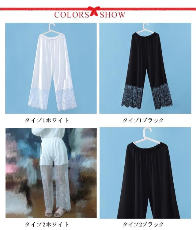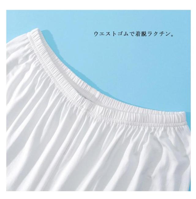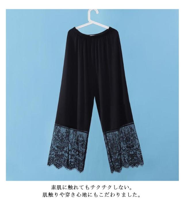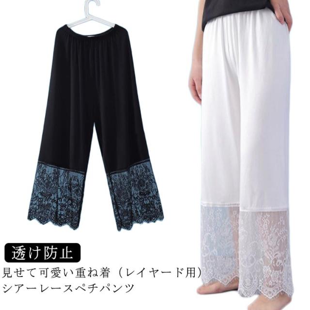 ロング インナーパンツ ウエストゴム 透け防止 パンツ レディース ペチパンツ スカラップレース 裾 裾レース 春夏秋 レイヤード用 ワンピ下 重ね着用 インナーパンツ レース 見せ ゆったり ワイドパンツ 無地 大人可愛い 白 ペチコート