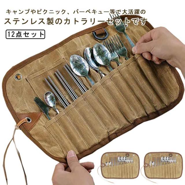 食器セット 12点セット アウトドア フォーク キャンプ 食器セット キャンプ食器 ステンレス ナイフ 折り畳み コンパクト キャンプ飯 カトラリー スプーン レジャー 清潔 ピクニック バーベキュー 収納ケース付き 箸 防災 防災グッズ 非常用 登山 カトラリーセット