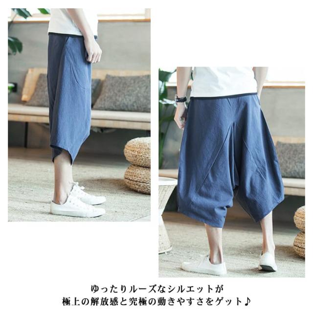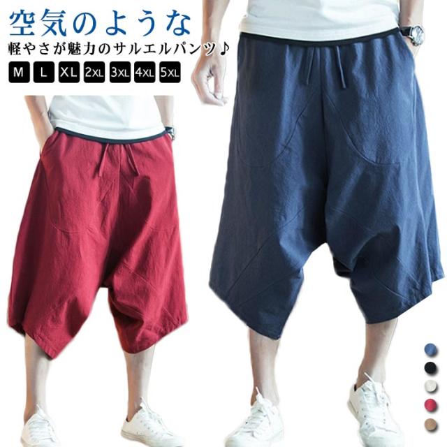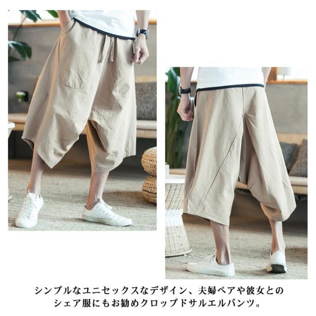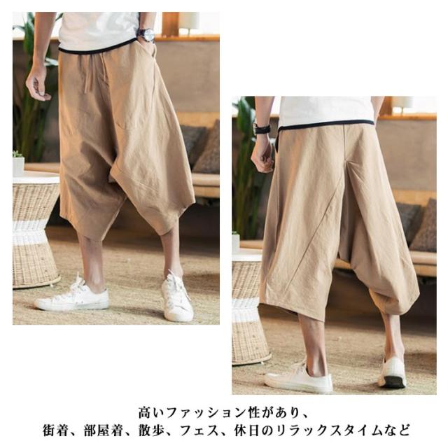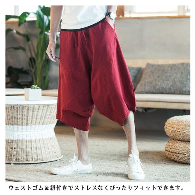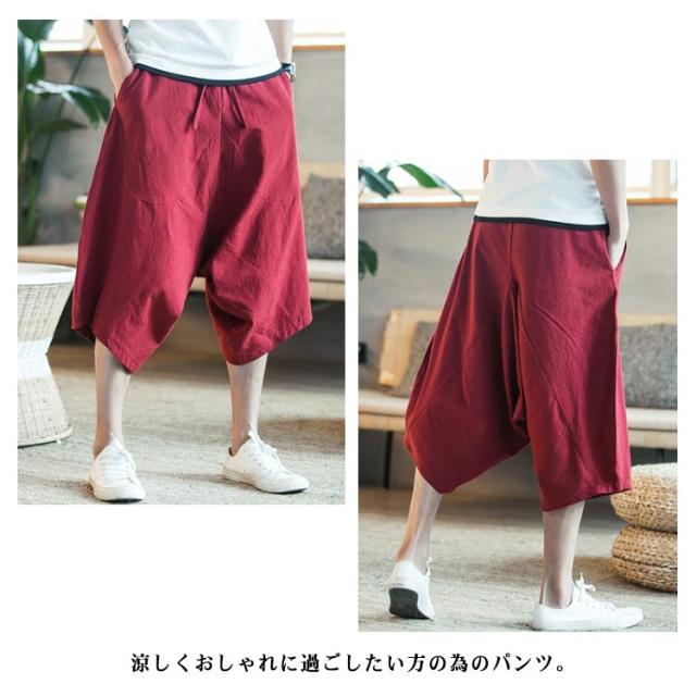 メンズ ハロンパンツ サルエルパンツ アラジンパンツ 七分丈 バルーンパンツ リネンパンツ 綿麻パンツ レディース パンツ アジアン エスニック 袴パンツ 部屋着 おうち着 イージーパンツ ハーフパンツ サルエル