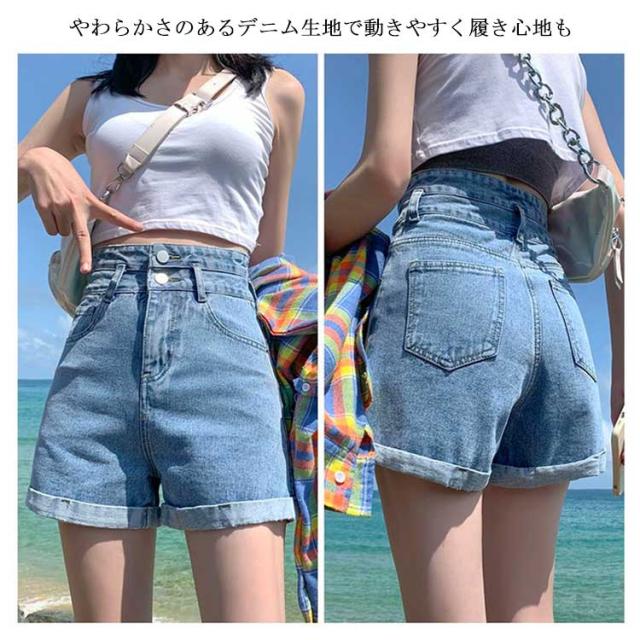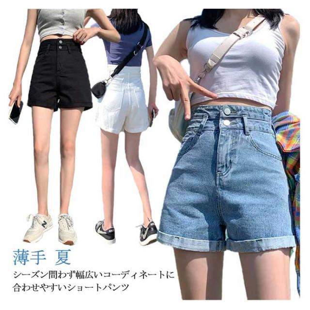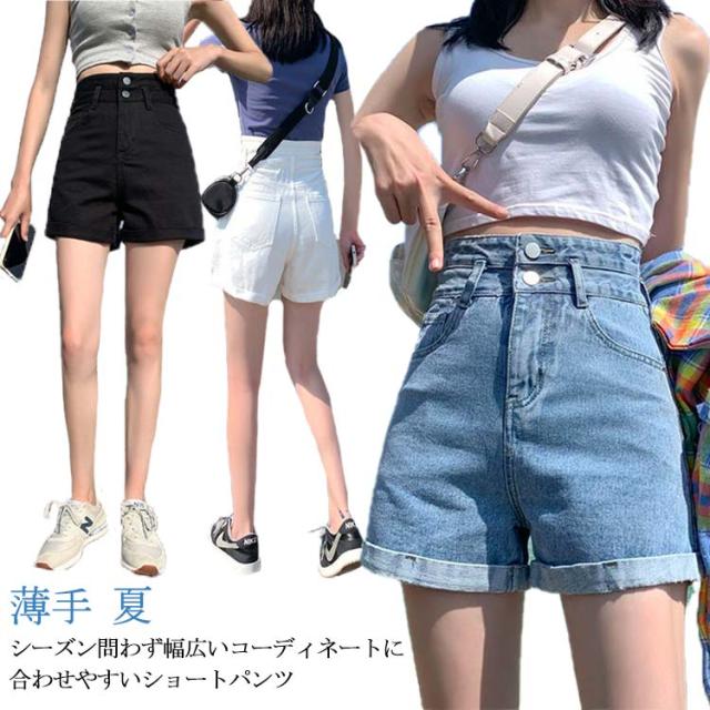 ボトムス デニム 短パン 無地 ミニ丈 ジーパン パンツ 薄手 夏 ハイウエスト ショーパン レディース ストリート カジュアル ビーチパンツ ショーパン ストリート 大人 ショートパンツ ズボン 水着 可愛い 女子 春 ブラック 黒 ライトブルー ホワイト ジーンズ