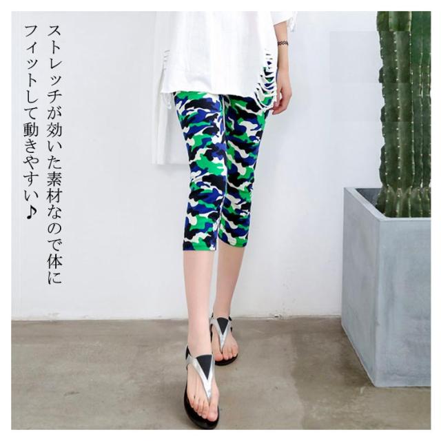 総柄 体型カバー スキニー レギパン レディース 7分丈 ウエストゴム 迷彩 レギンスパンツ ストレッチ UV対策 スキニーパンツ ひんやり 薄手 フィット 涼しい レギンス 美脚 紫外線対策 スパンツ スパッツ レギング ズボン 春 夏 春夏 レギパン