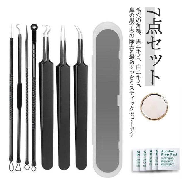 角栓 ピンセット 角栓取り 角栓 7点セット スキンケア 小鼻 黒ずみ ツィーザー 毛穴ケア専用キット 毛穴 角栓 にきび クリア 角栓 毛抜き にきび針 ニキビ針 スティック 鼻 ざらつき ピンセット 毛穴ケアセット 美容ツール 毛穴ケア 毛穴 ケア