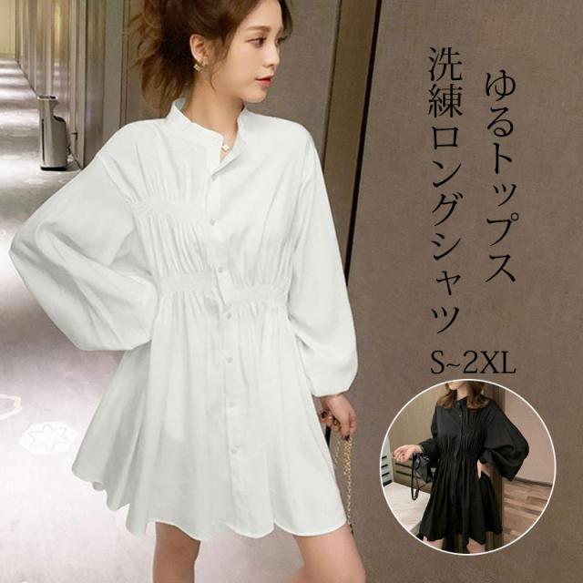 チュニック ロングシャツ シャツ レディース ワンピース ブラウス 体型カバー カットソー 着痩せ 羽織 ゆったり 無地 春秋 長